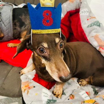 Meet Pretzel – our lovable little sausage dog with a big personality and an even bigger heart. He’s all about the creature comforts of life: soft blankets, warm laps, and endless cuddles. Pretzel is a pro at giving big, slobbery kisses and has absolutely no concept of personal space (and we wouldn’t have it any other way).
